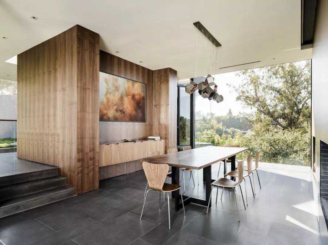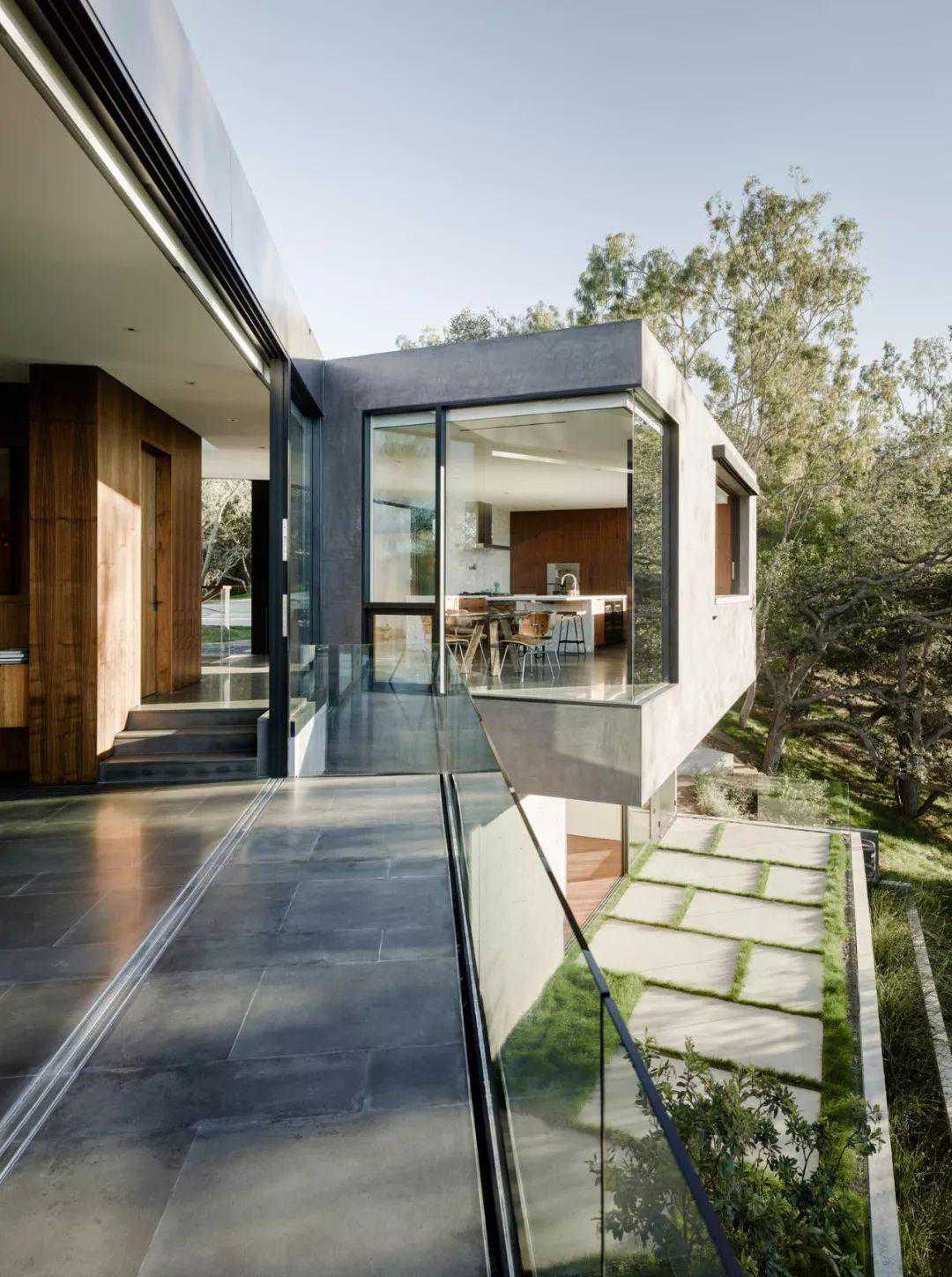 这座面积8000平方英尺的,相对较大的房子看起来要小得多,而且与周围的景观融为一体,其中包括130多座活橡树。