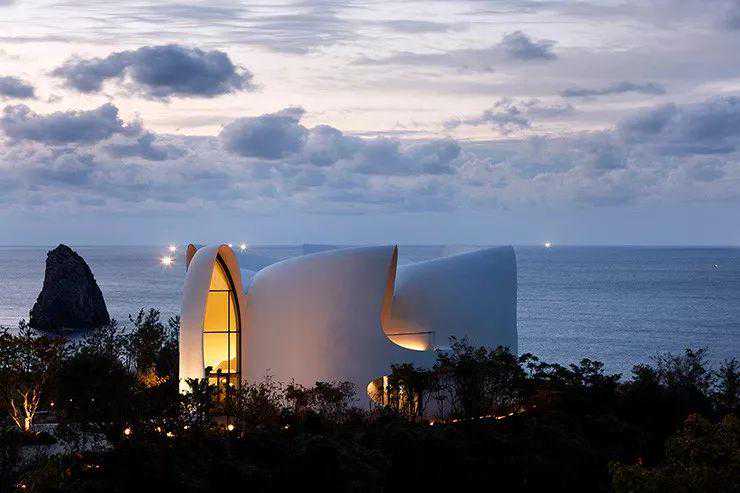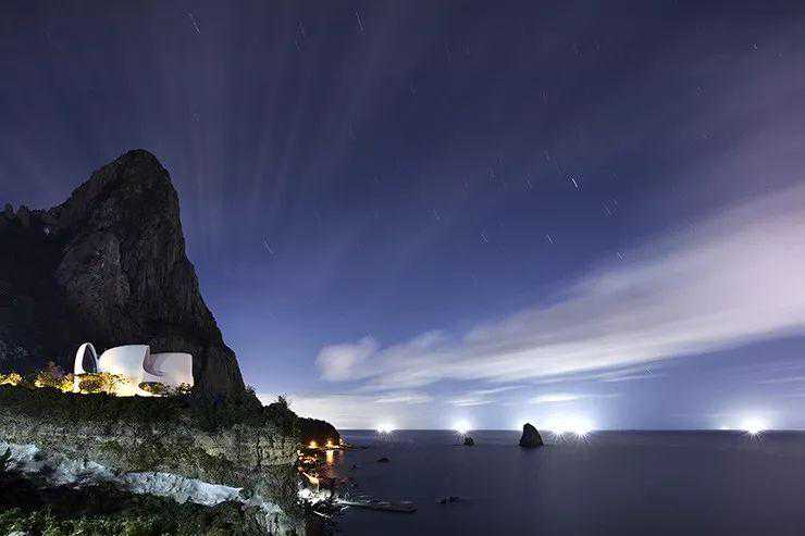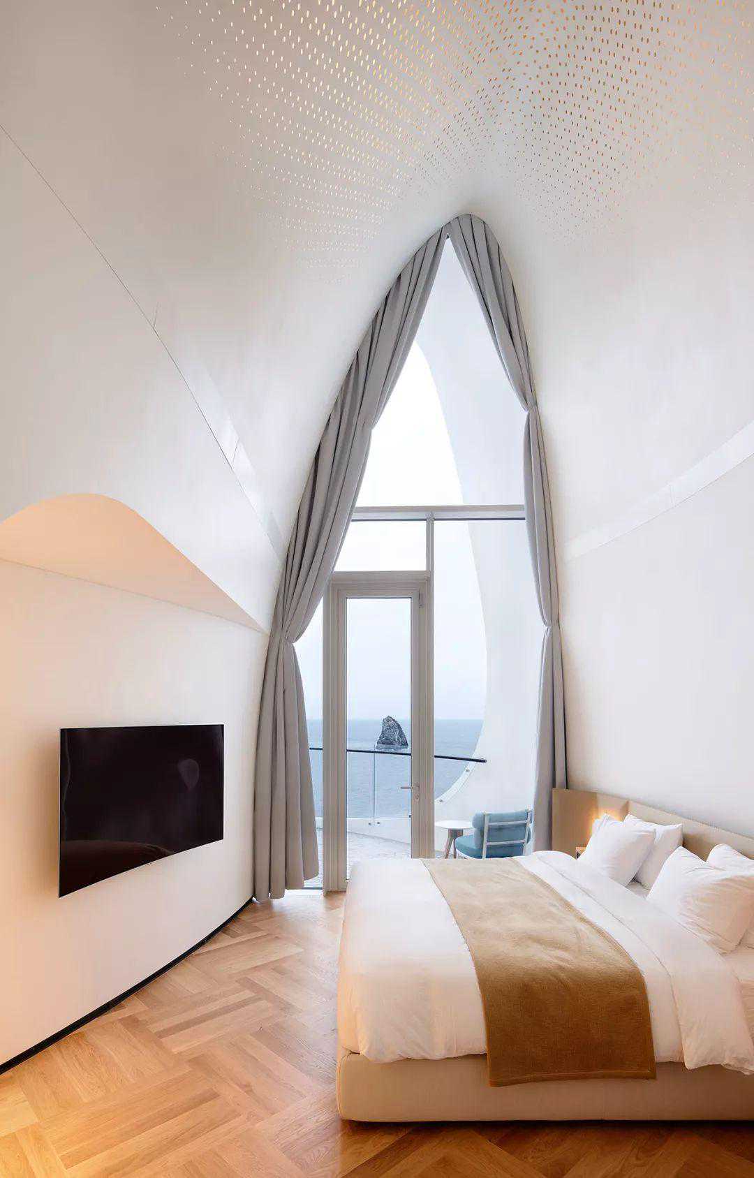 独特的环境要求一种独一无二的建筑风格,这个度假屋的灵感来自行星和恒星的天空漩涡。度假村的两座雪白建筑——科斯莫斯别墅和泰拉别墅,被雕刻成曲线优美的组合。既暗示了太阳和月亮的天体运动,也暗示了起伏的风景。