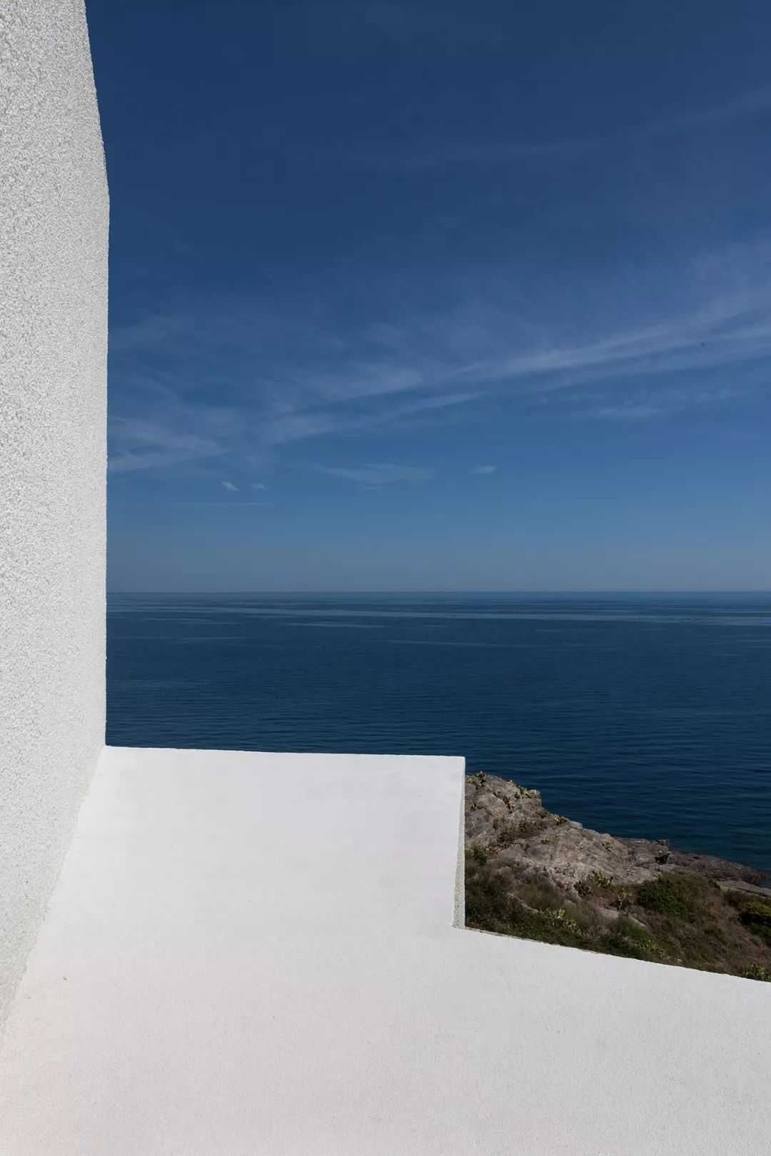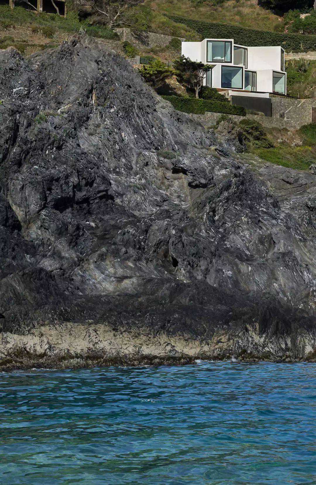 从远处看,突出的立方体,看起来像一个几何抽象的现代主义雕塑,在悬崖边郁郁葱葱的岩石和灌木衬托下,其明亮的白色得到了增强,房子里有如此千变万化的公海景色,对于房屋居住者来说,无疑是莫大的享受。
