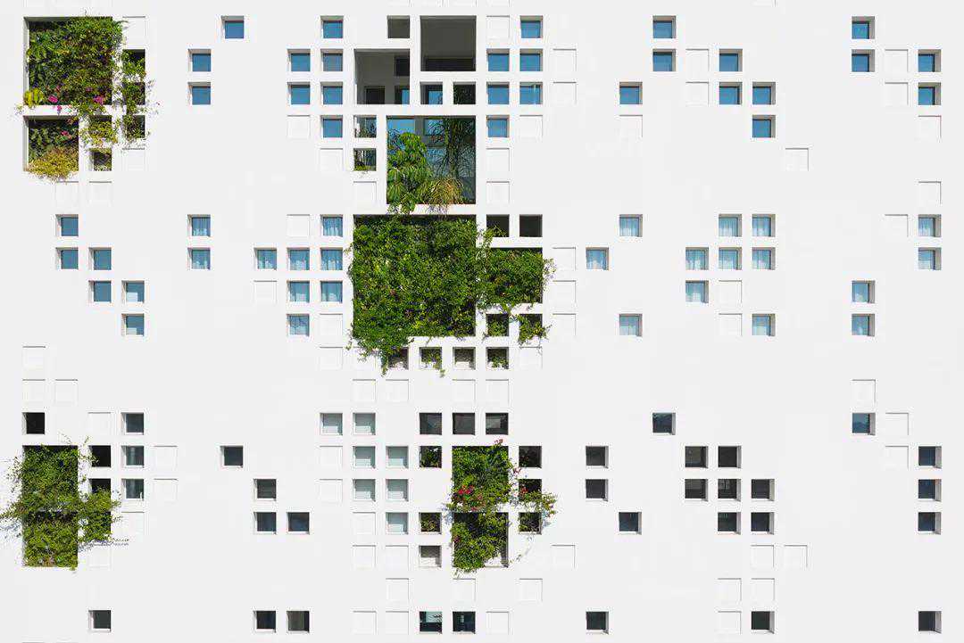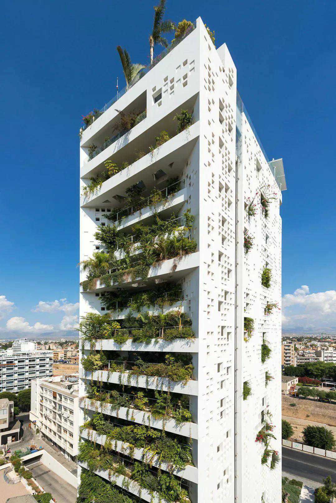 为了解决这个问题,建筑师在每一层,都种植了郁郁葱葱的植物,覆盖了80%的海拔高度,从而起到了天然屏障的作用,并为室内的人们创造了与自然的联系。