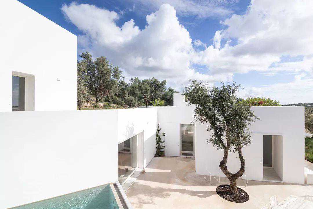 白色墙壁和混凝土地板的中性调色板,定义了外部和内部设计,是现代精致简约美学的基础。