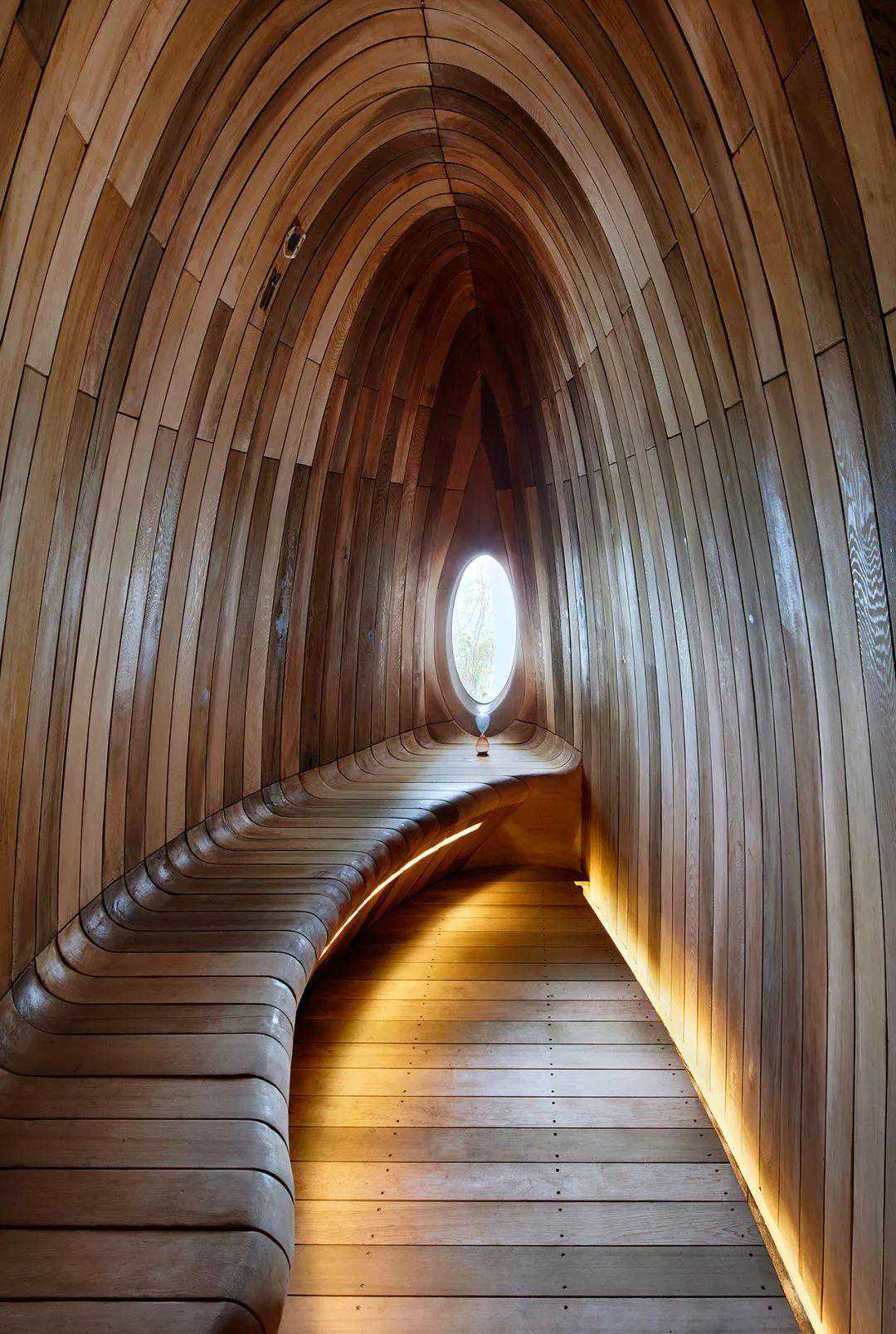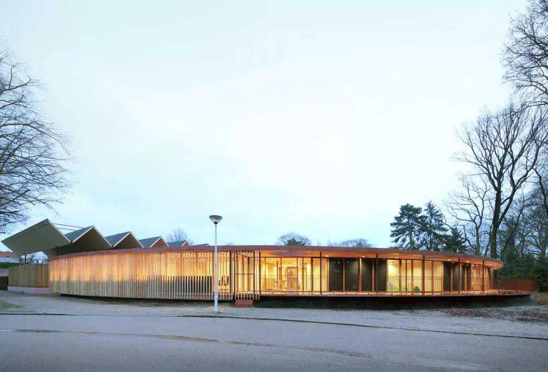 所以你能看的,整个托儿所的建筑宏大却线条流畅,原木打造的温和质感,以一个和谐的线条营造建筑的流畅感。并且看似简单的建筑,其实内含丰富的科学知识。