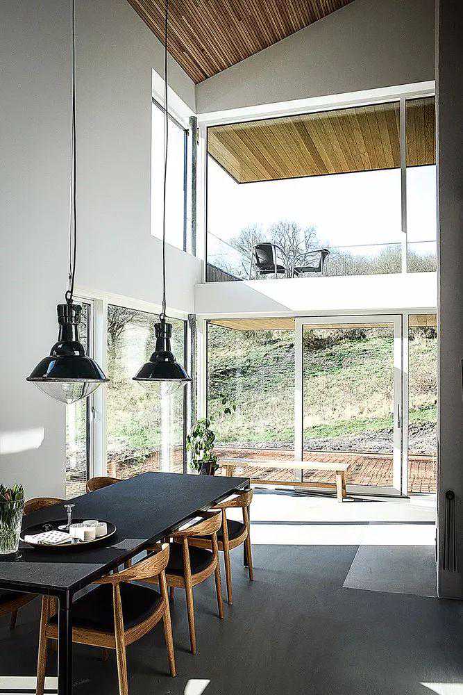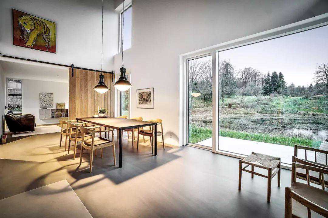 尤其是高达7米的天花板高度,使得整个空间十分开阔。通过和外部相连的窗台,可以直观的欣赏到湖泊,森林,以及天空的美景。