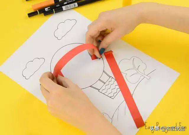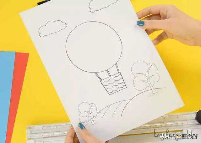 制作步骤:在纸上画出喜欢的热气球大体轮廓