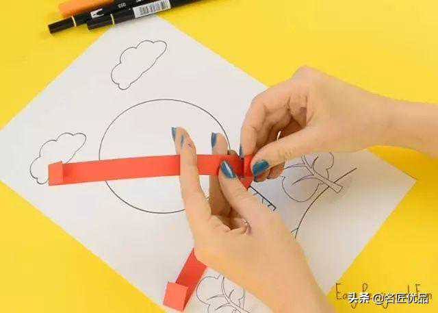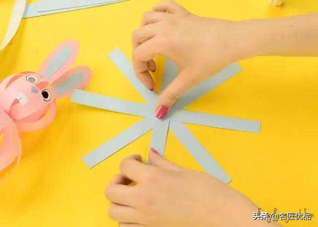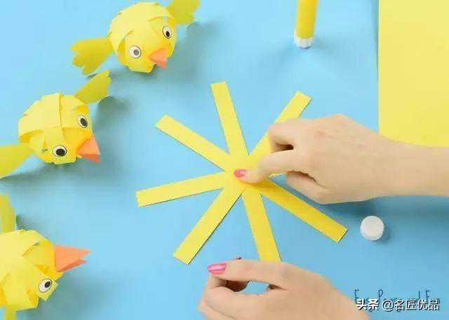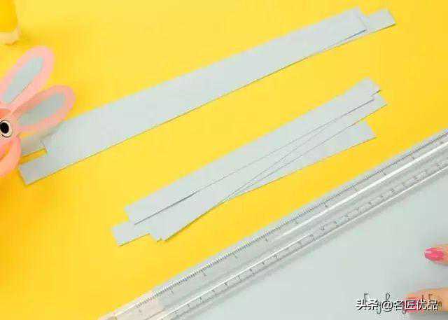 制作步骤:把黄色卡纸裁剪成宽度相同的纸条