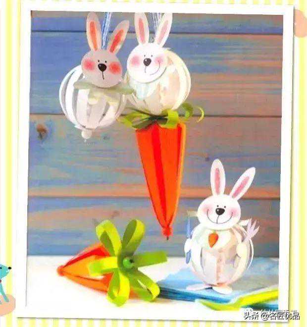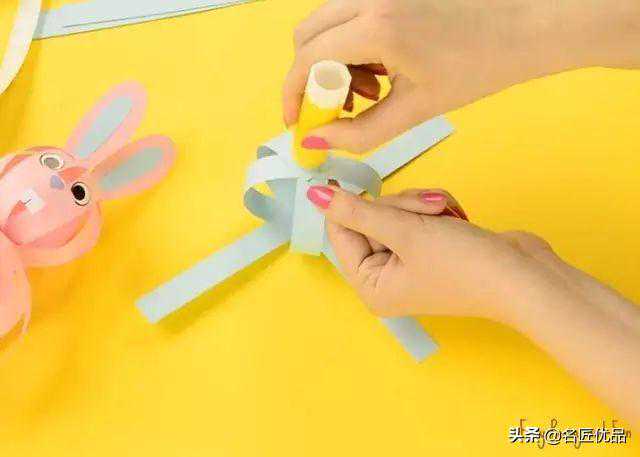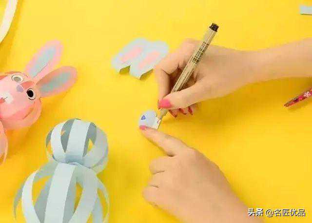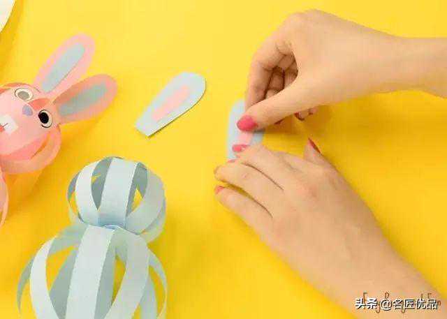 接下来用彩色卡纸裁剪兔子耳朵、鼻子和牙齿
