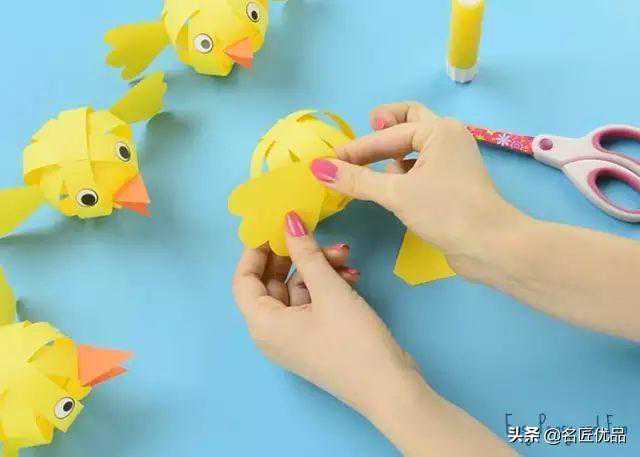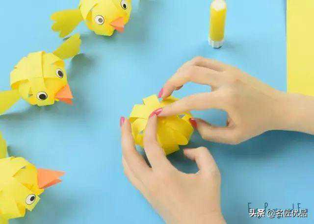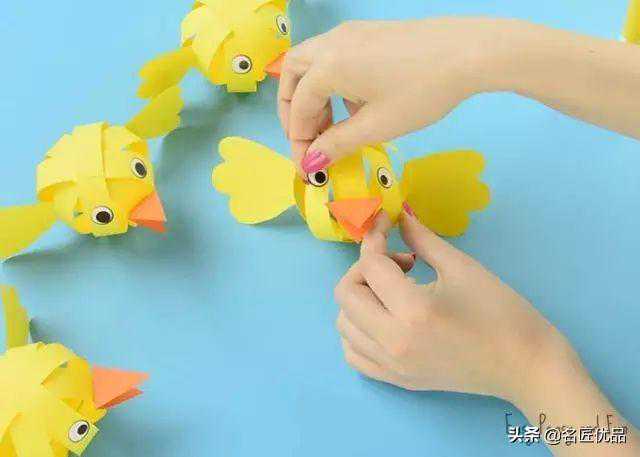 做过上面几款卡纸手工后,相信下面的小黄鸡一定也难不倒你了
