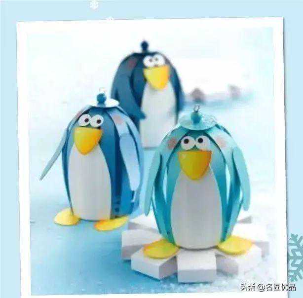 用卡纸剪出企鹅的眼睛、嘴巴和白肚皮,粘在球形卡纸上,萌萌哒企鹅就做好啦~
