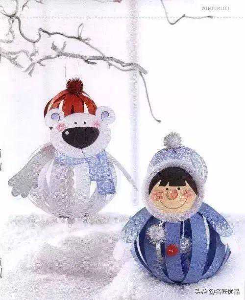 小朋友们,一起来堆雪人吧!只用两个球形卡纸就可以了哦~