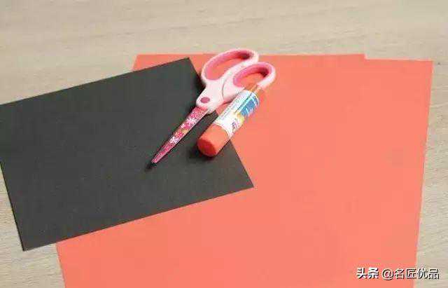 准备材料:黄色/橘色卡纸、剪刀、胶水、眼睛贴纸