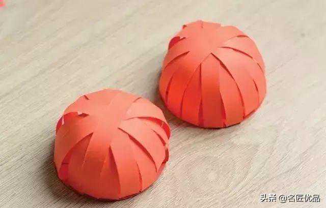 大概粘12条卡纸条,就可以做出一个卡纸球形啦~
