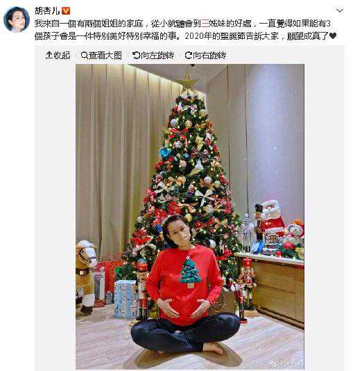 超级宝妈胡杏儿,也在今天开心地官宣了她怀第三胎的好消息,她把能成为三个孩子的妈妈当做最幸福的事。2015年她与老公结婚,2017年第一位baby出生,2019年第二位baby诞生,现在2020年第三位baby也来报到了。要不是有温暖的家庭作为后盾,以及对小孩子真挚的热爱,也不会在短短5年之内连生3个宝宝。
