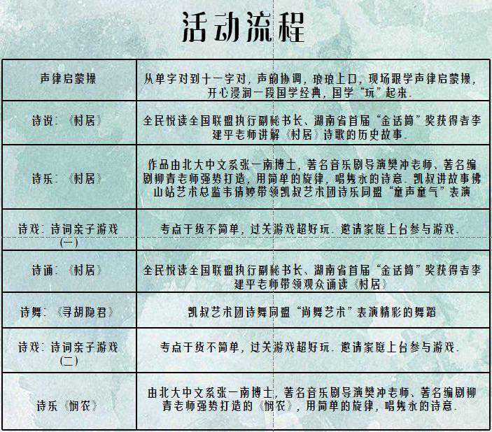 在“诗词来了”分享会中岭南文化学者李建平老师将为大家讲解诗歌《村居》的历史故事,现场通过韵律诗歌赏析、诗词脱口秀表演、诗词亲子游戏等环节让孩子们置身诗歌的意境,感受春天的美好,从而亲近诗词,爱上诗词。