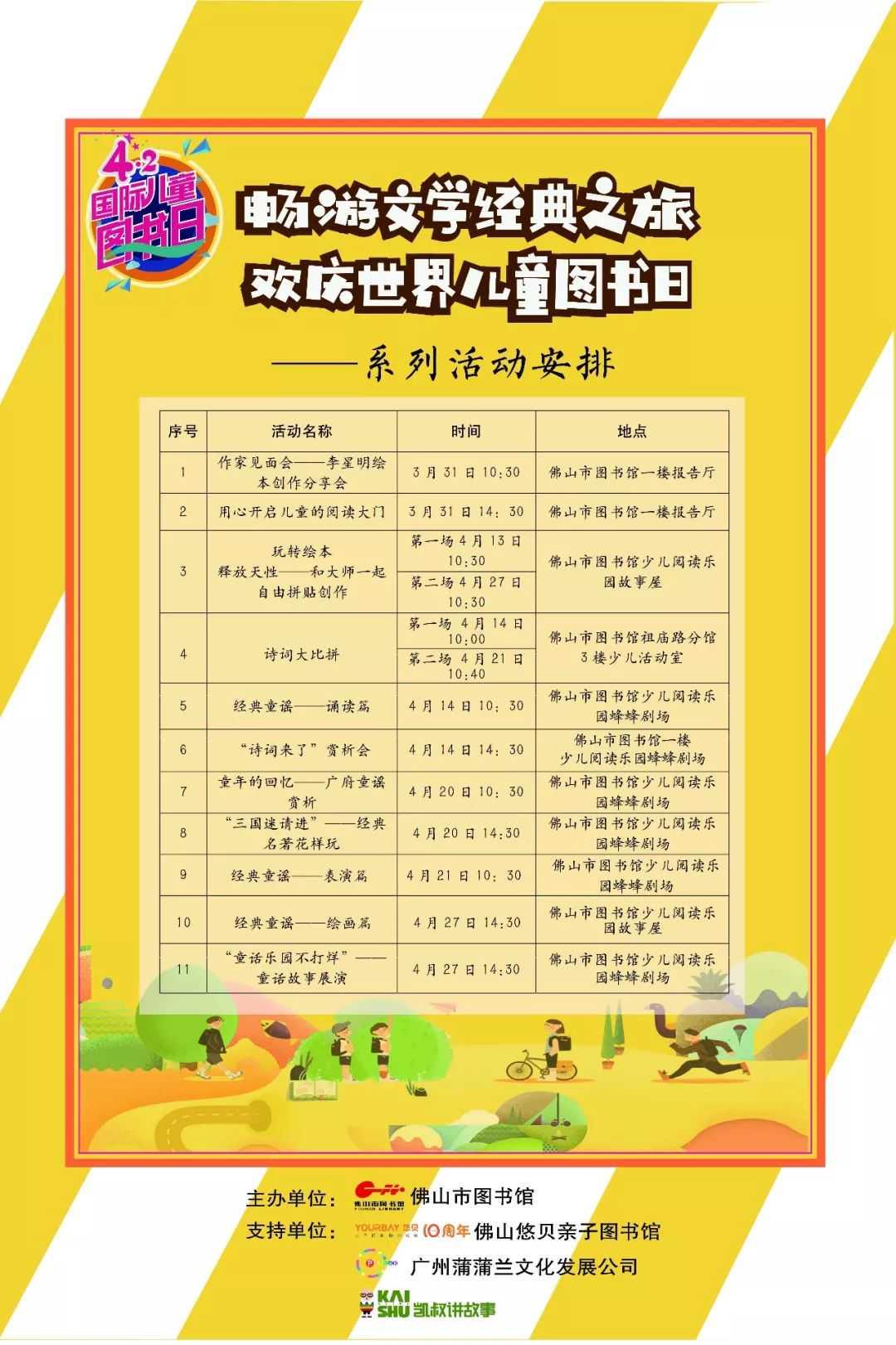 2019年4月2日是第53个国际儿童读书日,佛山市图书馆以“畅游文学经典之旅”为主题,在4月推出系列少儿阅读推广活动。