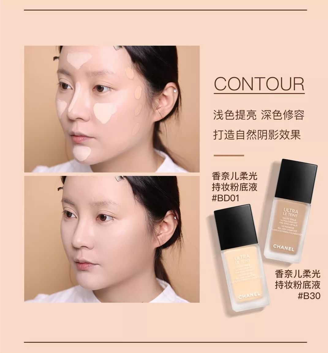 底妆:拥有丰富色号的香奈儿柔光持妆粉底液,可以满足所有仙女们的肤色需求!