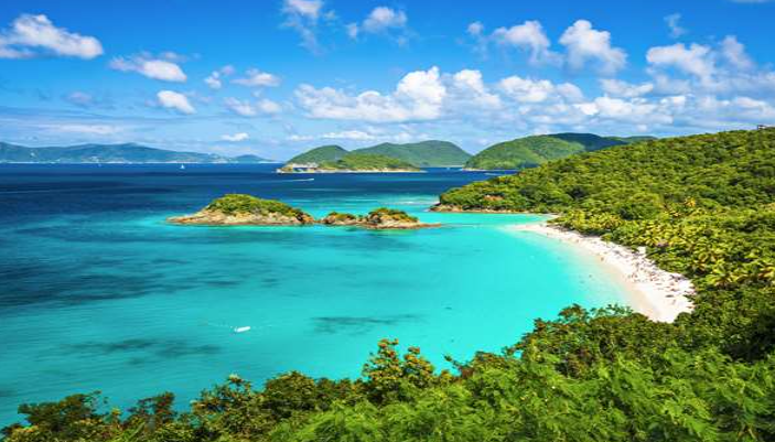 以自然美景著称的维尔京群岛国家公园(VirginIslandsNationalPark)是海滩和珊瑚礁环绕的火山岛公园,拥有约36平方公里景色瑰丽的加勒比海滩、水晶般碧蓝的海水及热带森林与山峦,覆盖了圣约翰岛()约四分之三的面积。根据国家公园管理局(NationalParkService)的说法,位于圣约翰岛('sIsland)上的白色沙滩被视为该地区的典范。