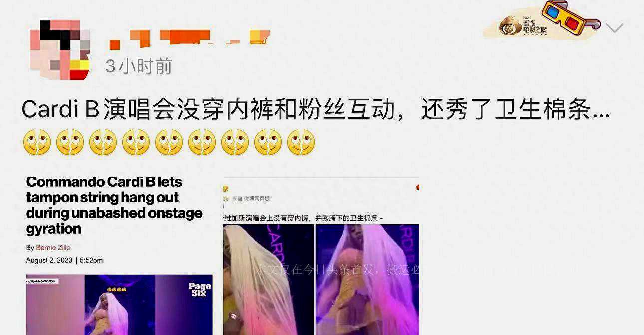 不止如此,卡迪碧在演唱会上的另一行为引发了更大的争议。她不仅在演唱会上不穿内裤,还展示了她的卫生棉条,这一举动在社交媒体上引发了热议。尽管有人批评她的行为过于大胆,但也有人认为这是她敢于表达自己的一种方式。