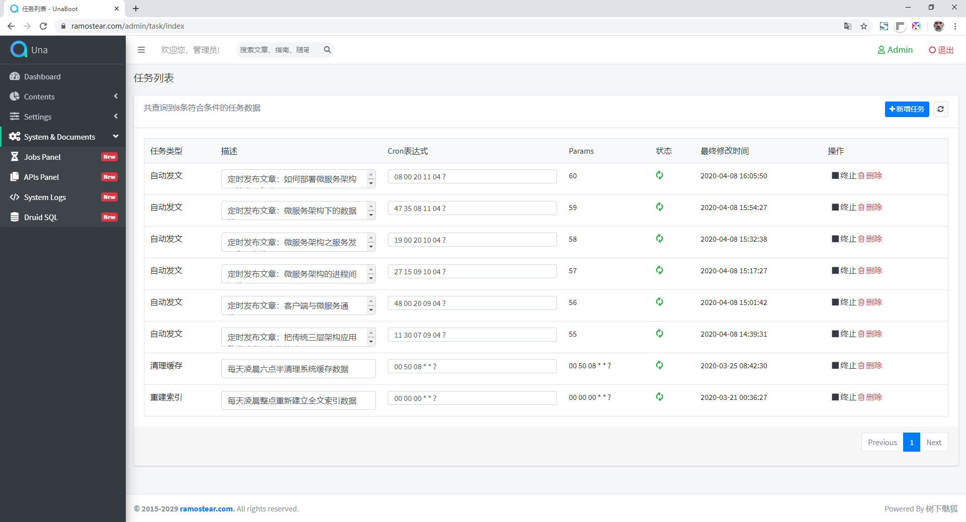 该站点的主题是自己另外定制的响应式主题包,需要的朋友可以联系我。新版的博客系统对登录页面,文章列表,后台定时任务都做了优化升级。下面是定制化主题的页面展示:
