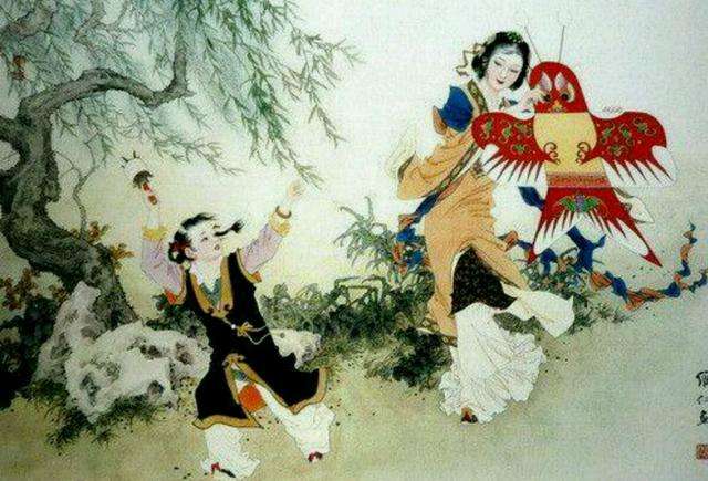 四、放风筝放晦气红楼梦第七十回,贾赦小妾嫣红的大蝴蝶风筝落到了院子里,贾宝玉和女孩子们刚做完咏絮诗,又起了放风筝的兴致。一说放风筝,丫头们都兴高采烈,纷纷开始做准备。