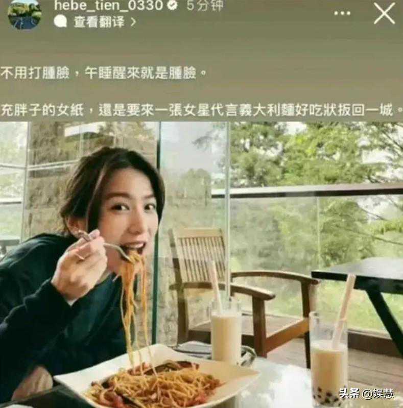 而田馥甄则没有,而是于当日发布了一条内涵丰富的“吃意大利面照”,还用上“打肿脸”“脸肿”词汇,导致公众对她的美好滤镜瞬间跌碎。