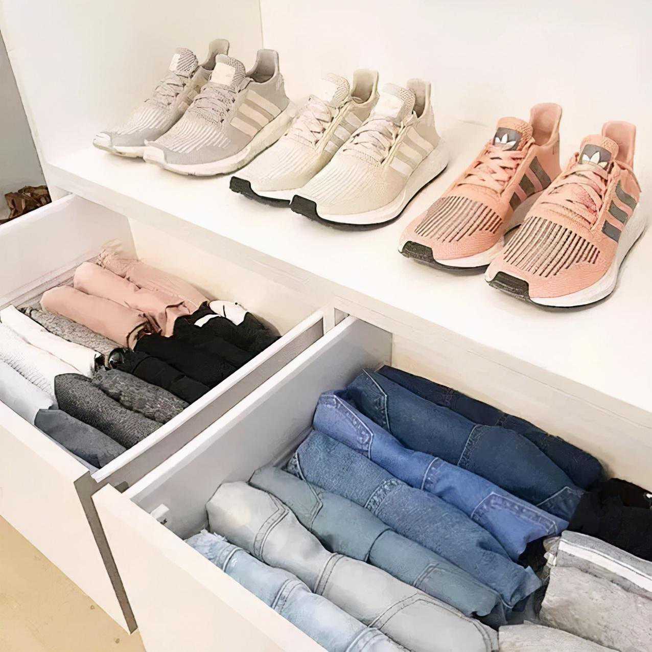 如果您的衣橱足够大,可以放衣服,而您只需要一个不同的地方来存放鞋子,以便您可以轻松取用它们,那么床底下是一个很好的区域,可以让它们既不显眼又触手可及。并且通过为您的鞋子带上合适的存储容器,您将不必随意将鞋子扔到床底下,并期望它们能够正确地合脚。