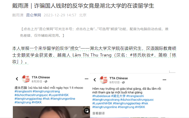 这名女子是一名来自越南的留学生,名字叫做林氏秋妆。