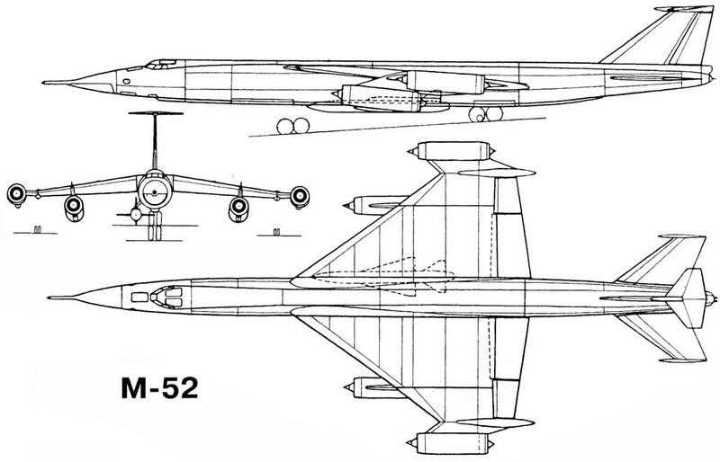 设计局还建议为M-52安装类似舰载机的拦阻钩,以缩短降落滑跑距离,此外还研究了M-52R侦察型。甚至还提出研制提高气动率和减轻机身重量的M-52A改进型来作为导弹载机。但是这只会使项目更加复杂,并不会获得所需的结果,因为当时苏联的航空发动机工业还无法制造出M-52A所需的高效涡喷发动机。