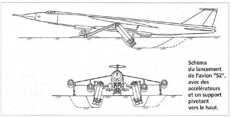 米亚西舍夫设计局还研究了M-52的零长度发射,在四台发动机和两具火箭助推器的推进下,能直接将53度迎角安装的M-52发射入空中,并在15秒内将飞机加速至555公里/小时的速度,并爬升到300米高度。在这种情况下,M-52的起飞重量能增加到217吨。