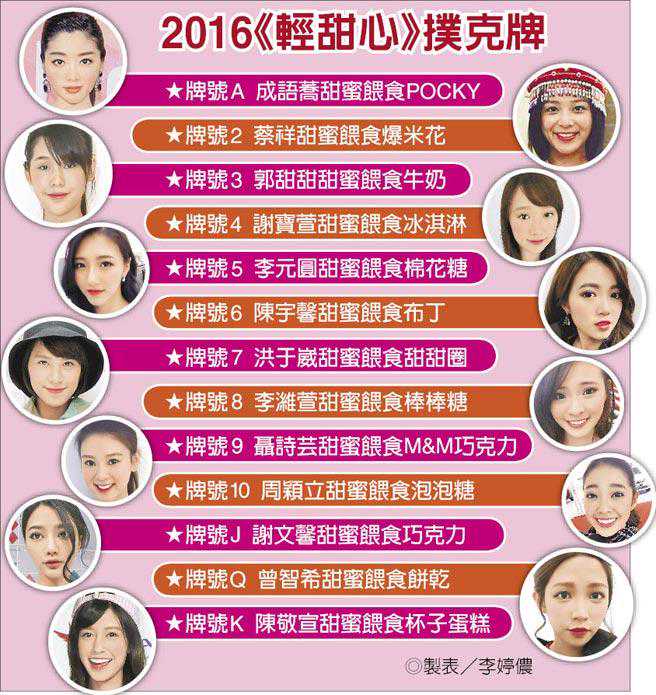 伊林娱乐在2013年推出「伊林女孩扑克牌」大受欢迎后,今年推出2016EelinGirl「轻甜心」扑克牌,18日抢先预购,13位正妹中也出现几张明星脸,像是之前演出《料理高校生》受到注意的陈敬宣,被网友封为「小蔡依林」,而洪于崴常被说有杨丞琳的味道,至于在拍新戏《川流之岛》的蔡祥,则有着郭采洁刚出道时的清新模样,非常令人期待!