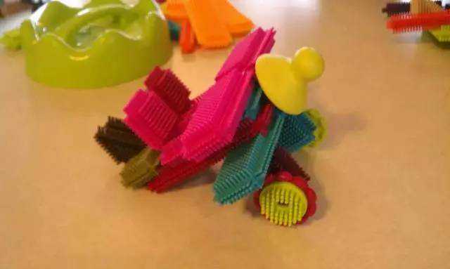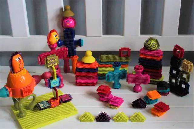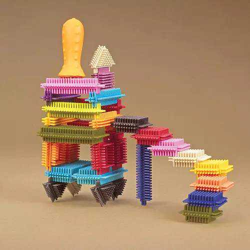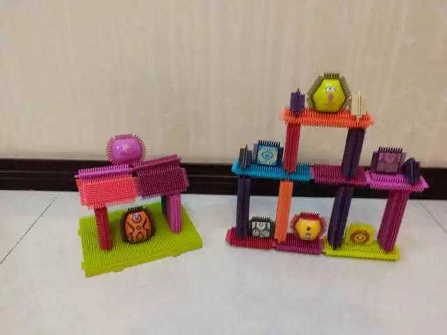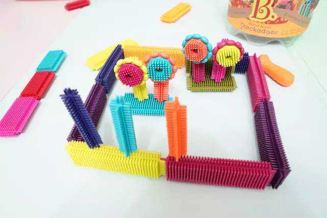 和美高、磁力片、乐高一样,鬃毛玩具也属于搭建类游戏,但不同于乐高,美高(需要对接好小孔和凸起)的是,鬃毛积木利用无毛刺的鬃毛突起,进行稳固的拼接。