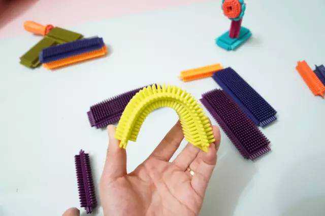 靠“鬃毛齿”连接,不需要精确对接,轻轻用力就可以连接上,并且可以多角度连接(这点不同于美高、乐高,只能精准对接),所以低龄的小朋友也能轻松上手,获得成就感和乐趣;