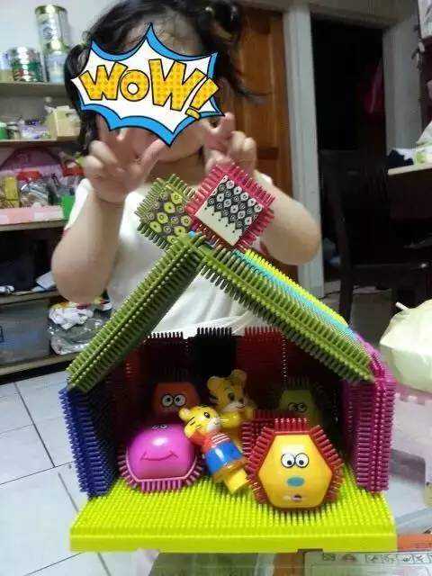 这个是大人帮忙搭建的,孩子用这个小房子玩过家家玩了半天。同时,小朋友也对这个玩具产生了兴趣,想要自己动手来玩。