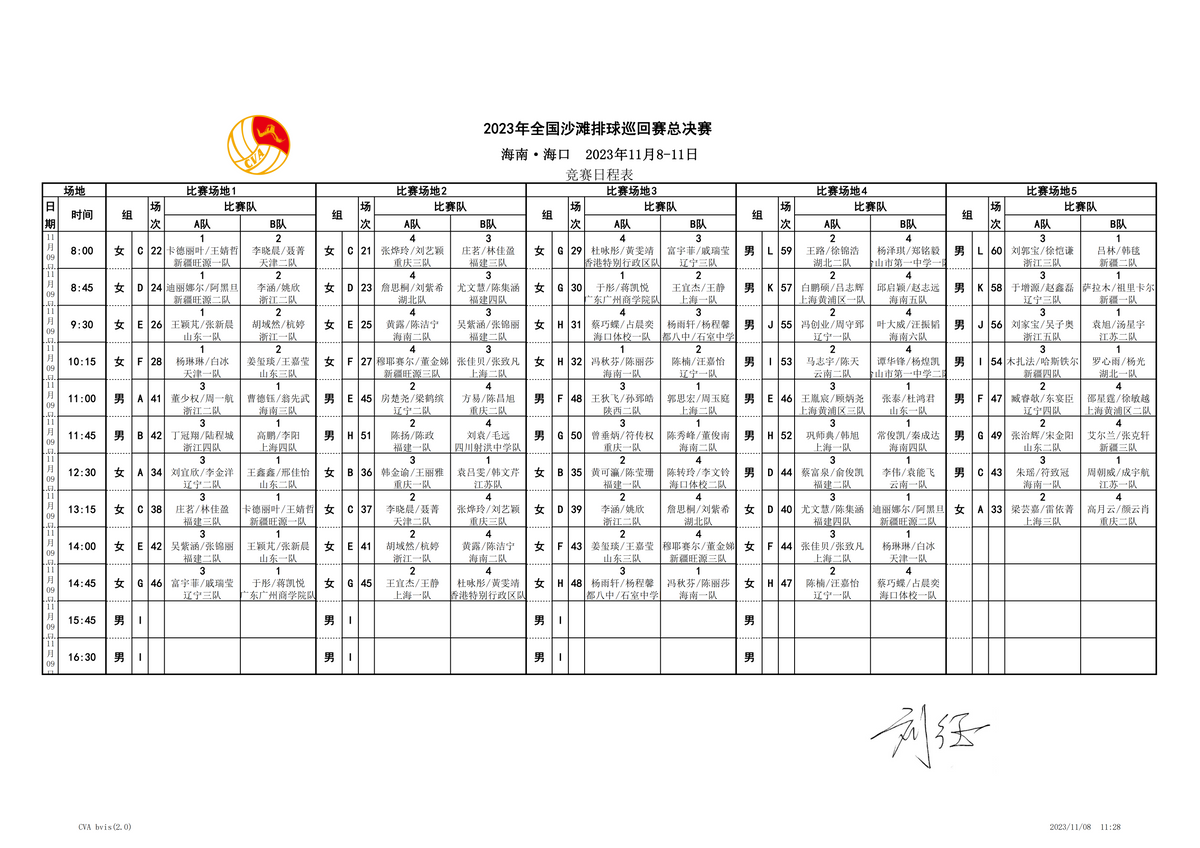 2023全国沙滩排球巡回赛总决赛11月9日竞赛日程表↑