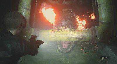 ※每一次攻击都要慎重:暴君会快速猛冲到玩家身边,并发起攻击。小心保持距离,射击它的头部即可。暴君的耐久力很高,不痛不痒的攻击很可能会引起它的反扑,也可以用火焰喷射器作为辅助。反正是最后一战了,别太吝啬了吧。