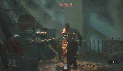 暴君被干掉后,时间所剩不多,但唯一的出口遍布丧尸……明白人一般会给自己留个雷,或者趁开门的瞬间,直接火箭筒给那么一炮……时间有限,躲开丧尸一路逃往缆车乘降站,剧情过后游戏结束。
