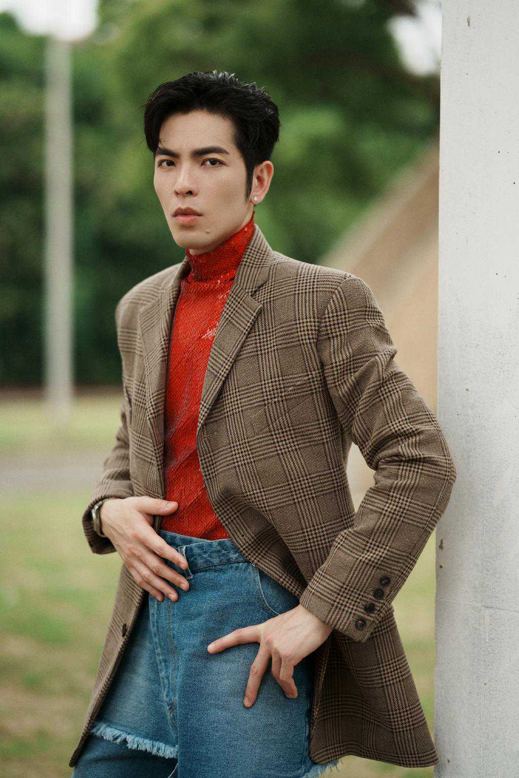 除此之外,外面还选择了一件花里胡哨的格子长款西装。