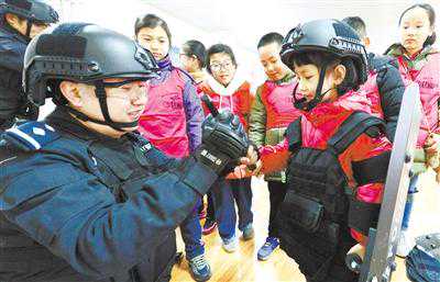 在互动环节,孩子们算是真正体验了一把特警队员的辛苦。之前光听讲解,每个特警队员浑身上下的装备,不算枪械就有足足十公斤重,孩子们也是糊里糊涂。试穿时有的孩子刚戴了一个头盔,就说已经快被压得喘不过气了。通过切身的体会,孩子们真实地体会到特警队员们的艰辛与不易。
