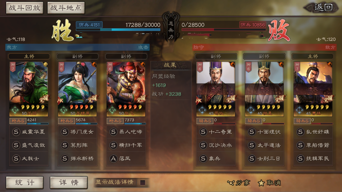 理性游戏,适度氪金。大家好我是诸葛村夫!在三战游戏中高氪玩家毕竟是少数!游戏的生态环境还是由广大的平民玩家组成。而平民玩家面对的最大困难就是,武将不全,战法不全!沦为战功宝宝。如何玩转三战就得巧用现有的武将战法。今天村夫就给大家简单介绍一队平民蜀枪,有关羽关妹二人上阵,外加张飞组成!