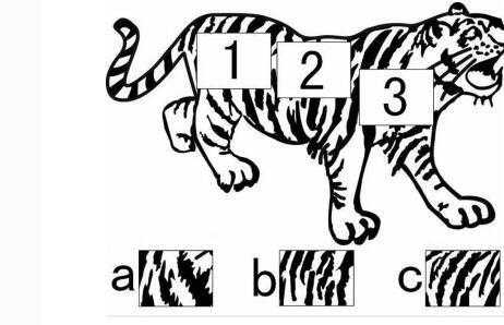 4、a,b,c,老虎身上的花纹,各填入1,2,3中哪一块比较合适?