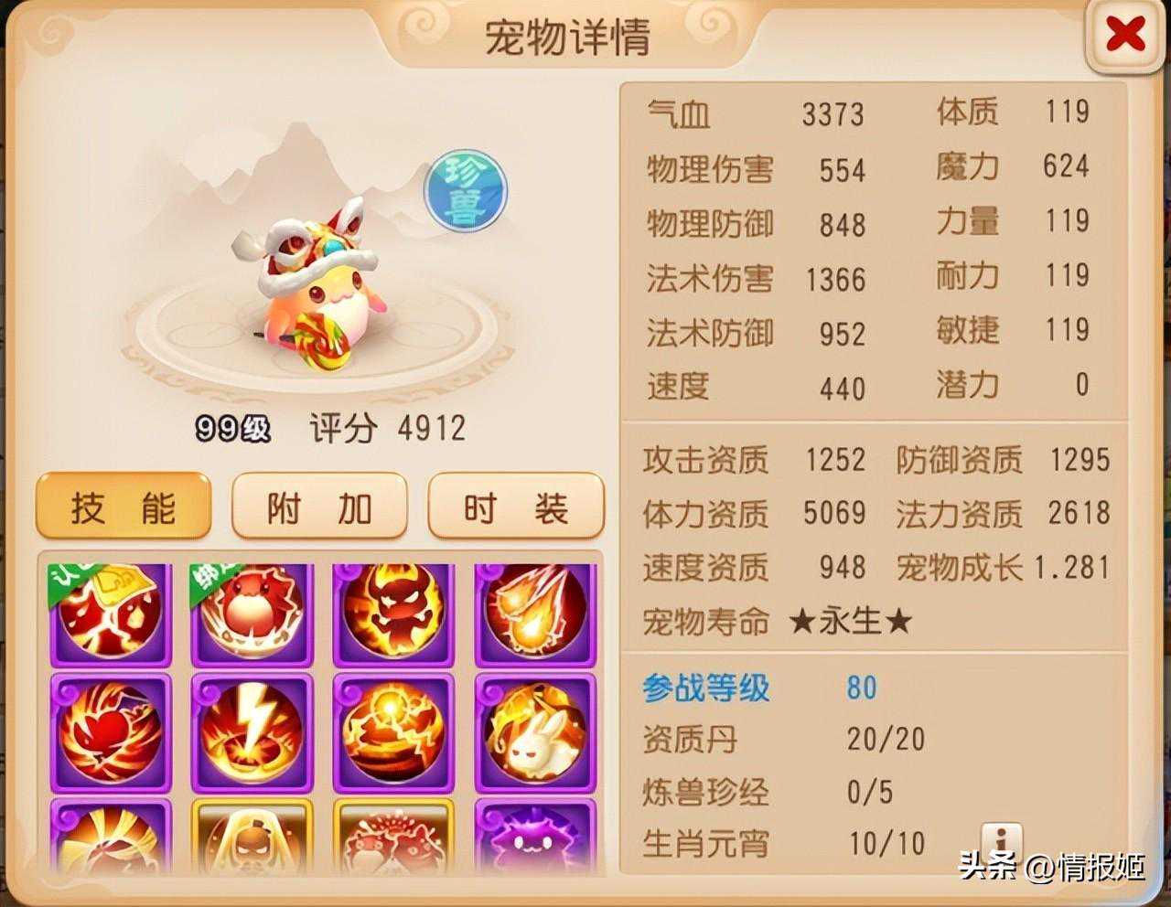 相比起来,吉里吉里的同胞兄弟,蓝胖子“咕噜咕噜”的绑定技能附加的是法术减伤状态,时装技能的功能性也不如吉里吉里。结果,大家都是无极玄黄石兑换的珍兽,黄胖子就是比蓝胖子更受玩家欢迎一些。