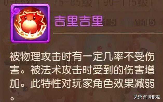 所以能躲避物理伤害的吉里就拥有更多的生存能力,在清宠阶段往往是很多物理玩家头疼的对象。加上吉里吉里本身自带高级神佑复生这个技能(就算打书的时候掉了,很多PK玩家也会选择补上),打了半天最后一刀出个绿。一个破血下去,说不定就有人要吐血了。