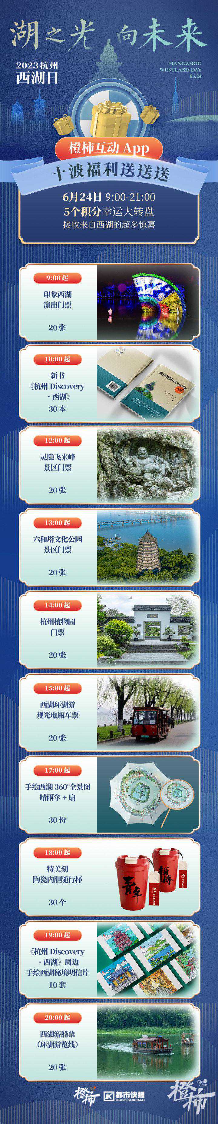 杭州西湖风景名胜区管委会特别联合都市快报·橙柿互动,推出6.24西湖日专属宠粉福利。