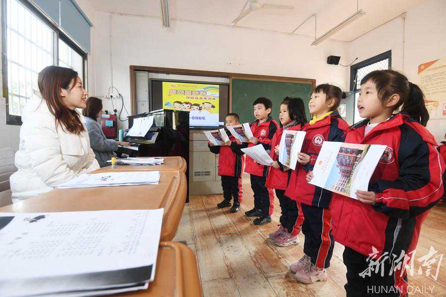 12月27日,长沙市开福区马栏山小学,一年级学生在参加“你弹我唱”唱歌游戏。