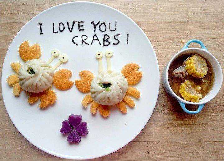 多啦A梦、派大星、青蛙、螃蟹、花朵……只要儿子喜欢的卡通形象,她都能做成盘中餐。