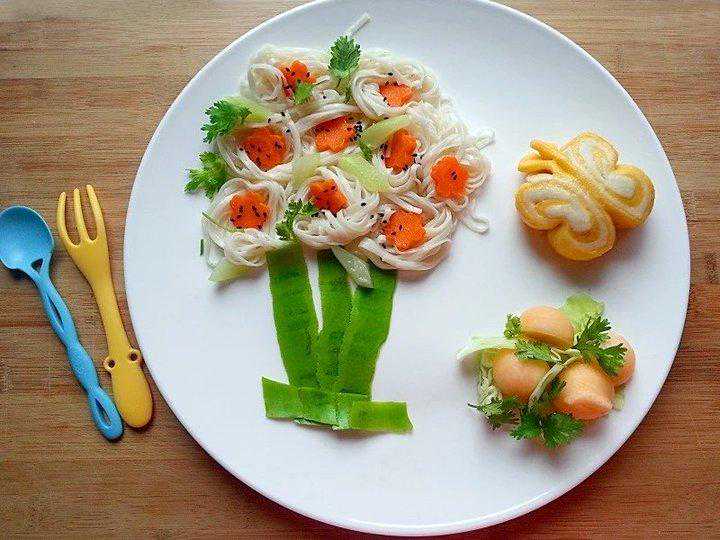 面条树+馒头蝴蝶+水果+果汁