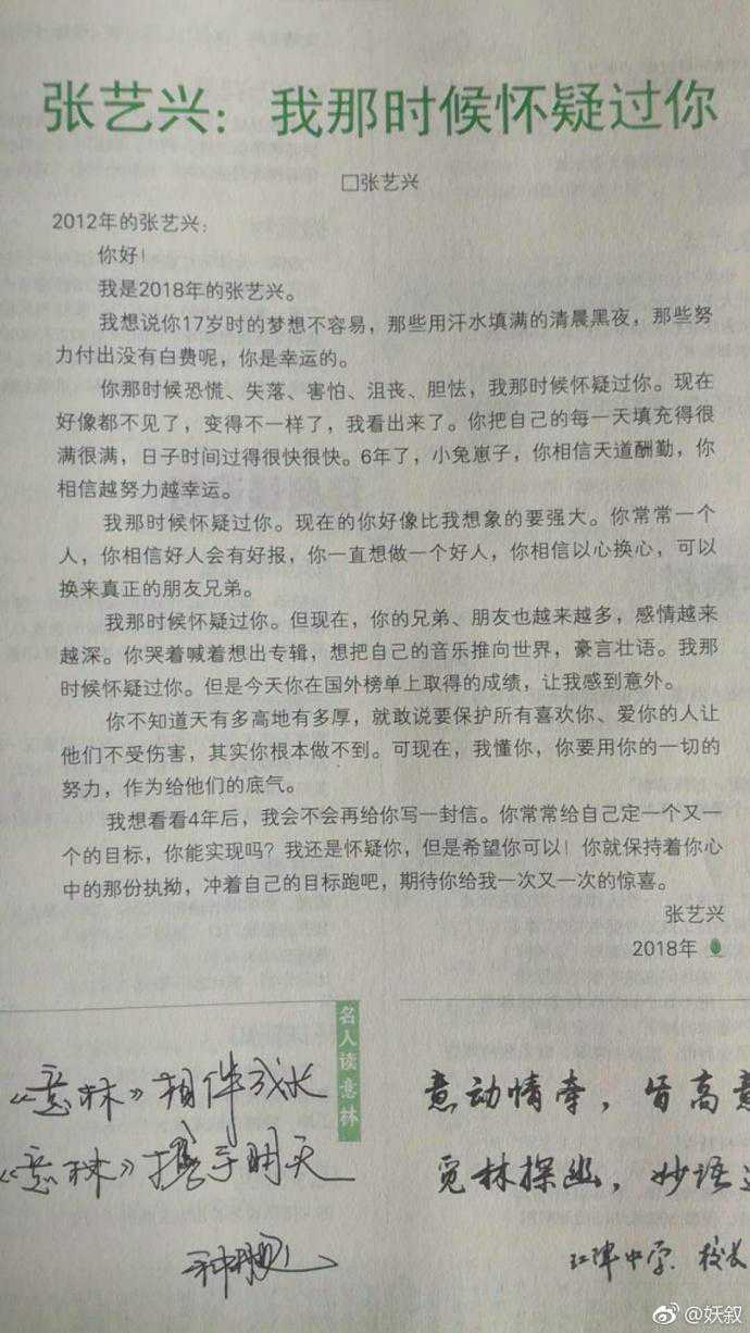 大家还记得那个1月17日深夜在微博上写了一篇致2012年自己的小论文的张艺兴吗?近日,有贝壳发现这篇文章被刊载上《意林:作文素材》杂志3月下半月刊中。因为太过励志而成为学生们的作文素材,真实发散着优秀光芒的艺兴真是我们的大骄傲!(PS.也是辛苦帮忙加标点符号的小编了)