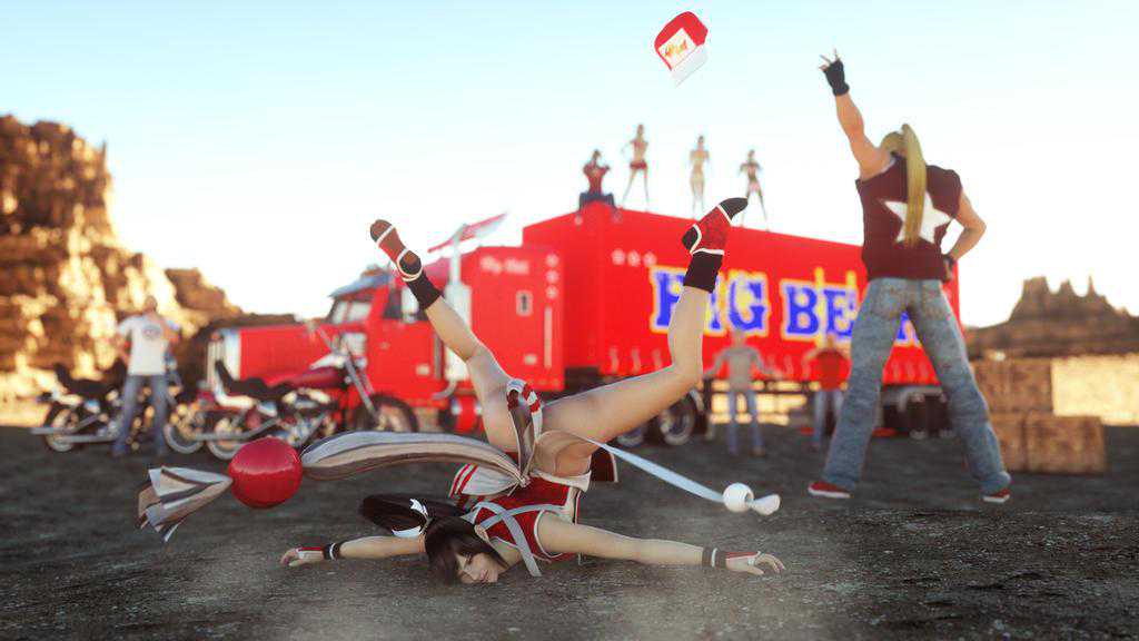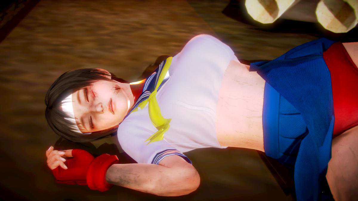 另一边,不知火舞在被打倒在地之后,一般都是脸朝下的画面。虽然经常看到这个画面,但并没有引起注意。而这个画面要是被3D化,那就比较有看头了。