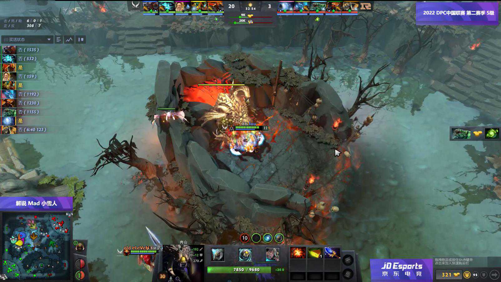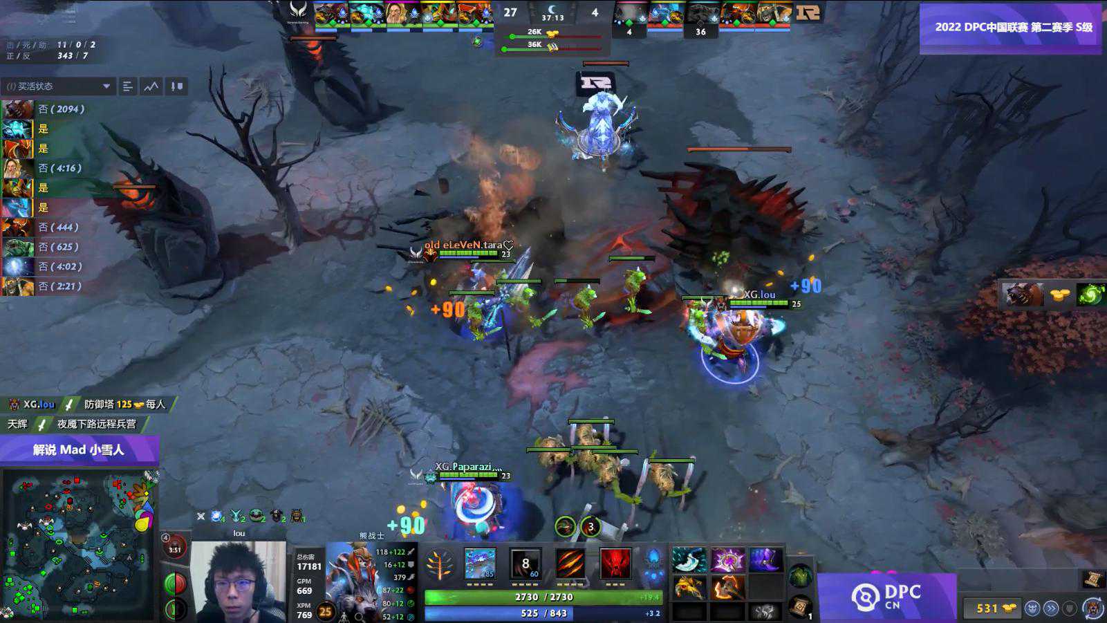 对线期结束,RNG和XG虽然看上去是打得有来有回的,但lou却在技能空档期内抓住机会偷掉了肉山盾,随后XG更是靠着蓝猫的BKB、龙骑的跳刀以及熊战士的高爆发频频占到便宜,在比赛进行到20分钟时Maybe已然是连续阵亡难以挡住XG的各种技能了,RNG甚至是有那么一丝到点的味道了。