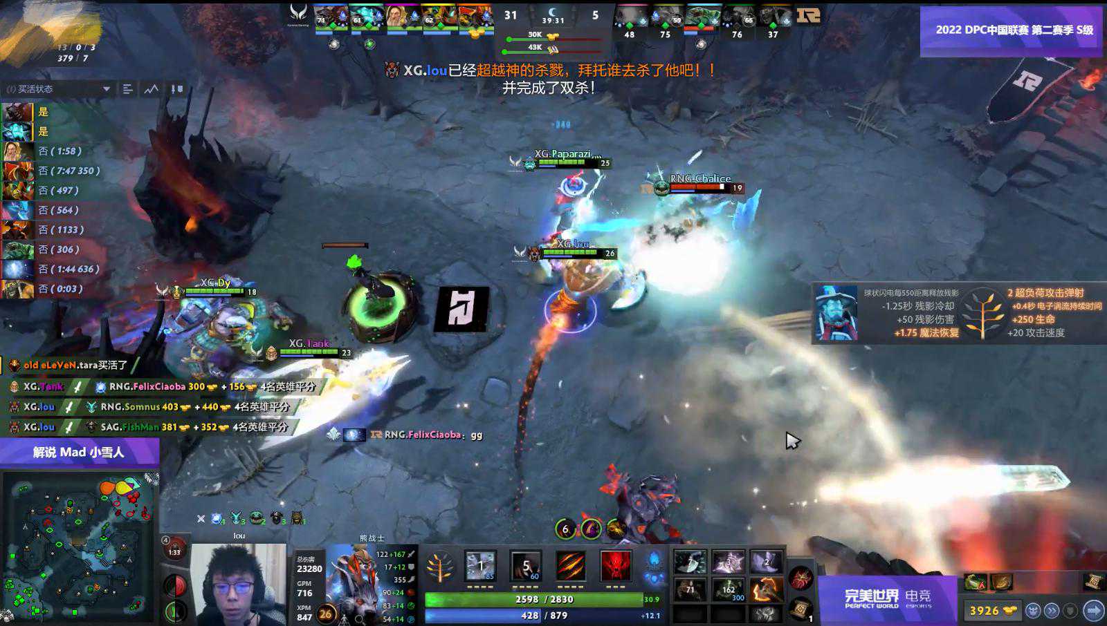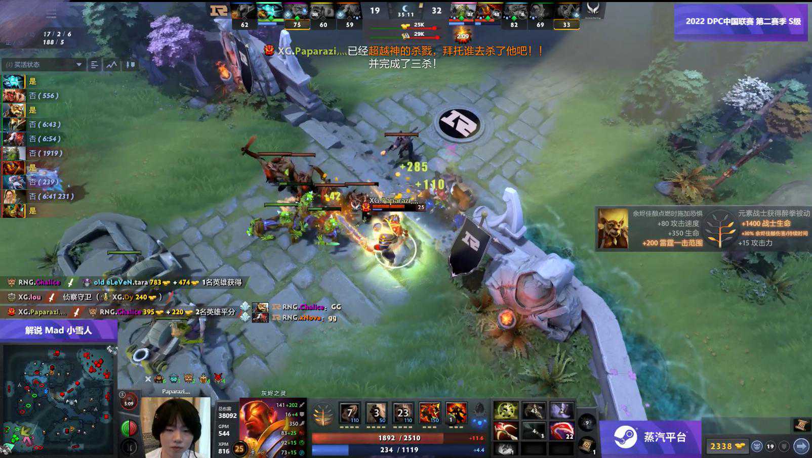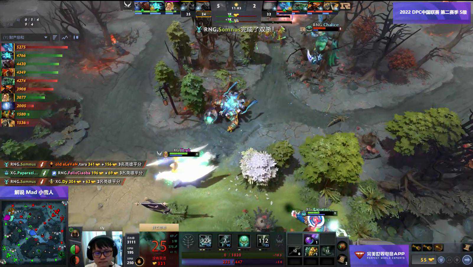 哈喽大家好,这里是蜻蜓队长Zwj。2022年4月24日下午15:00左右,大比分同为4-3的RNG与XG在DPC联赛中相遇了,这场比赛的胜负将会直接影响他们本赛季的具体排名,那么到底是在最近备受指责的Maybe带队击败XG呢,还是在此前和Maybe闹过矛盾的oldeleVeN带队(队内还有个前Elephant小象的C位选手拒绝者)握手RNG呢?下面就让队长带大家一起来简单地了解一下吧。