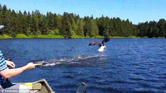【环球网综合报道】据英国《每日邮报》5月11道,加拿大一对夫妇正在安大略省的枫叶湖钓鱼,不巧一只老鹰突然飞过去叼走了他们的鱼,这一幕被妻子J•温斯()抓拍到并上传至YouTube,引发围观。